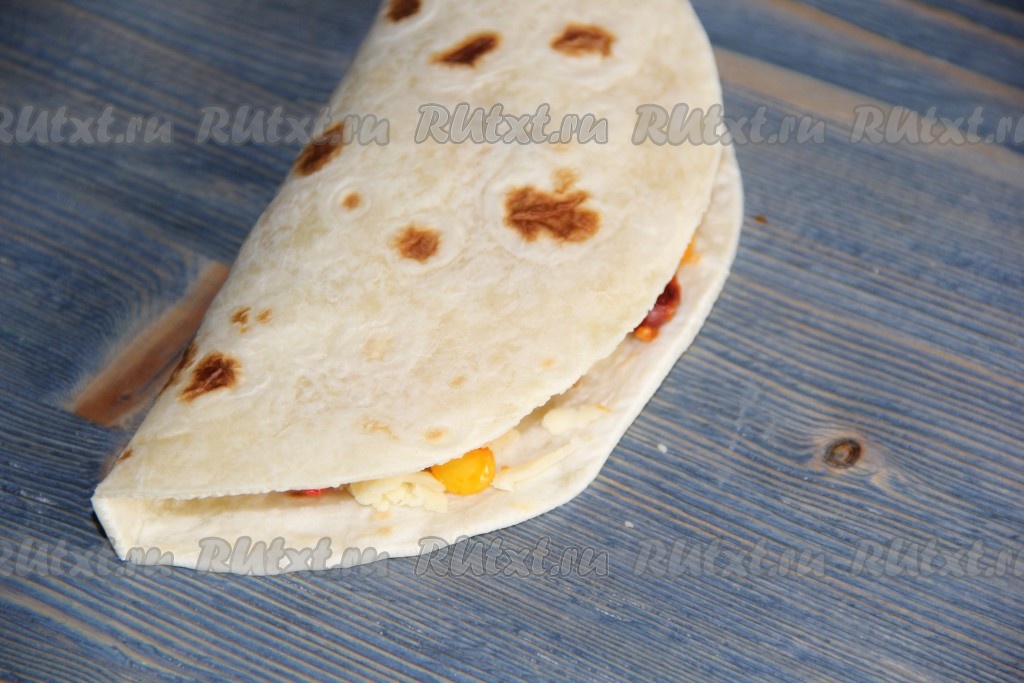 Накрыть начинку второй половинкой лепёшки и слегка прижать начинку.