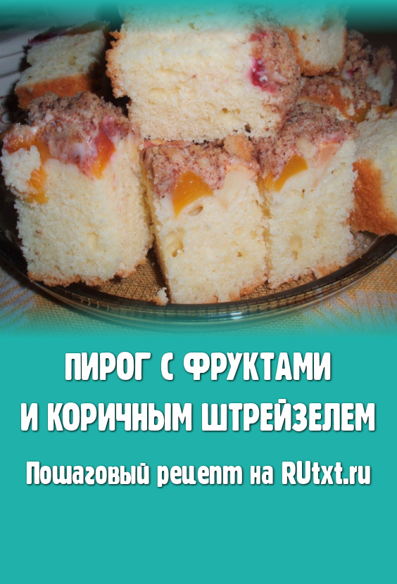 Остывший пирог с фруктами и коричным штрейзелем нарезать на порционные кусочки и подать к чаю или кофе.
