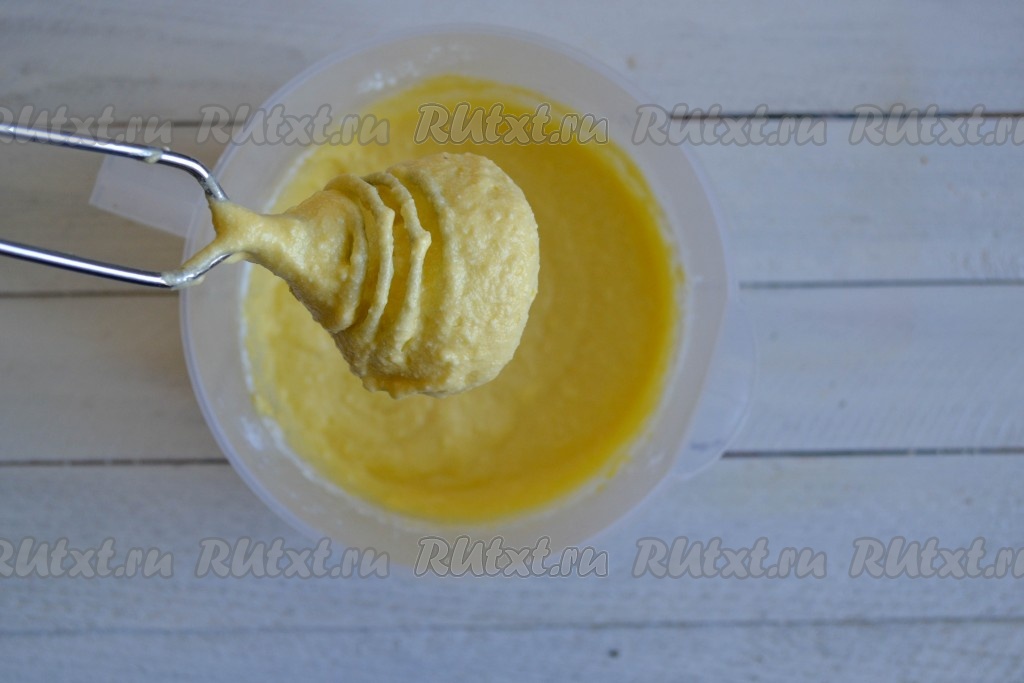 Тесто станет более густым, плотным. Если приподнять венчик, то тесто с него будет медленно сползать вниз.