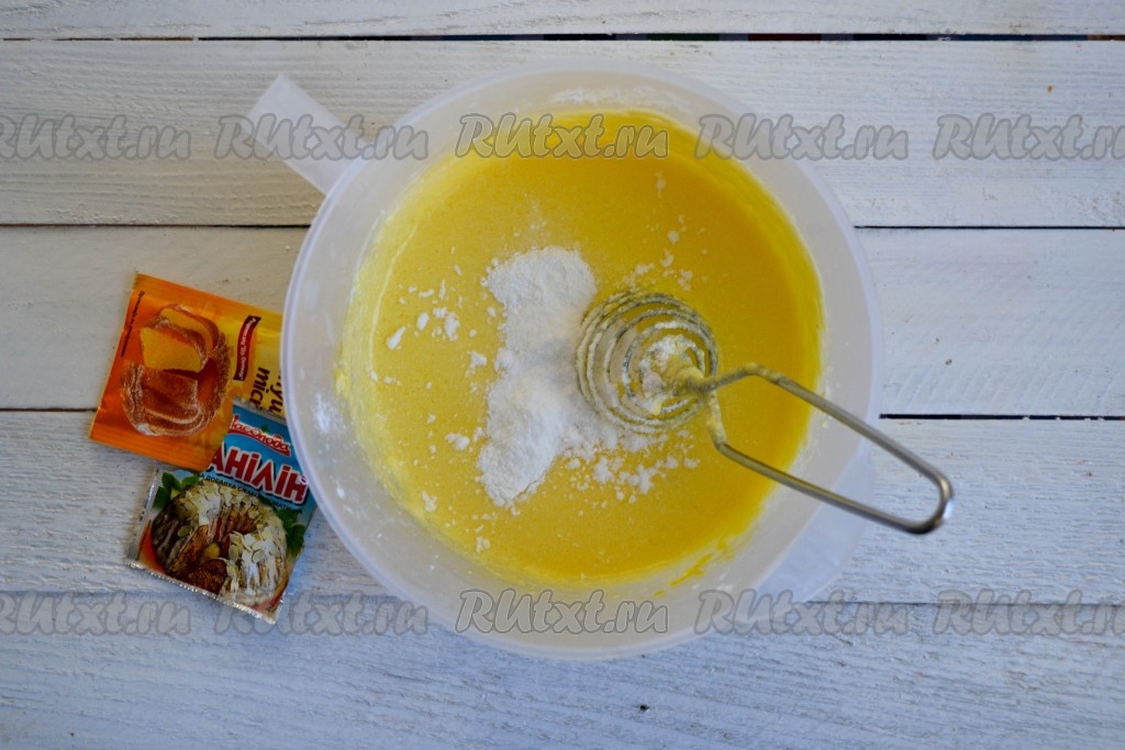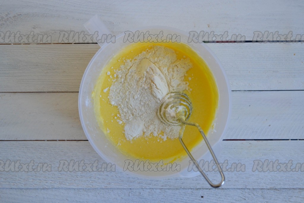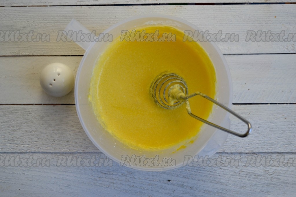 Всыпать соль и снова тщательно перемешать. Масса станет более жидкой.