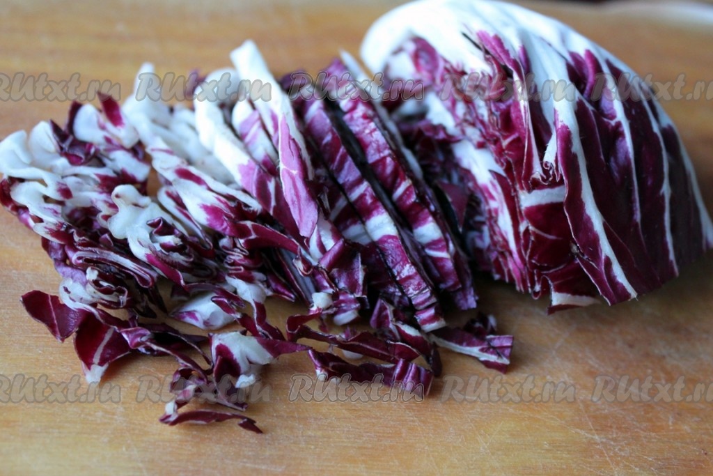 Салат радиччо порезать соломкой (или листовой порвать на кусочки).