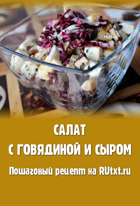 В салатник или порционные салатники положить слоями: радиччо, говядину, сыр, посыпать грецкими орехами и заправить наш салат тем маслом с ароматом базилика, которое образовалось при обжаривании адыгейского сыра. Необычный и вкусный салат с говядиной и сыром готов.