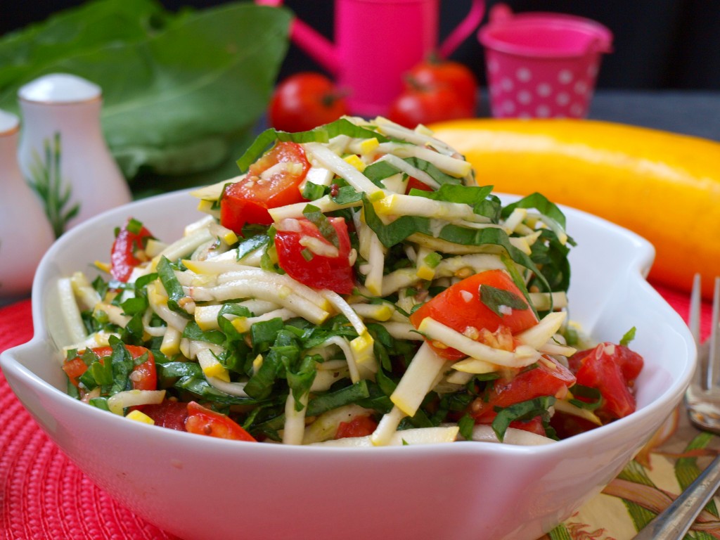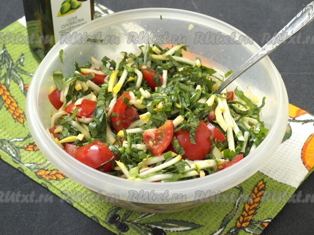 Вкуснейший, сочный салат с свежими кабачками, помидорами и щавелем подать к столу. Блюдо получается достаточно диетическим и полезным, поэтому готовить его можно достаточно часто.