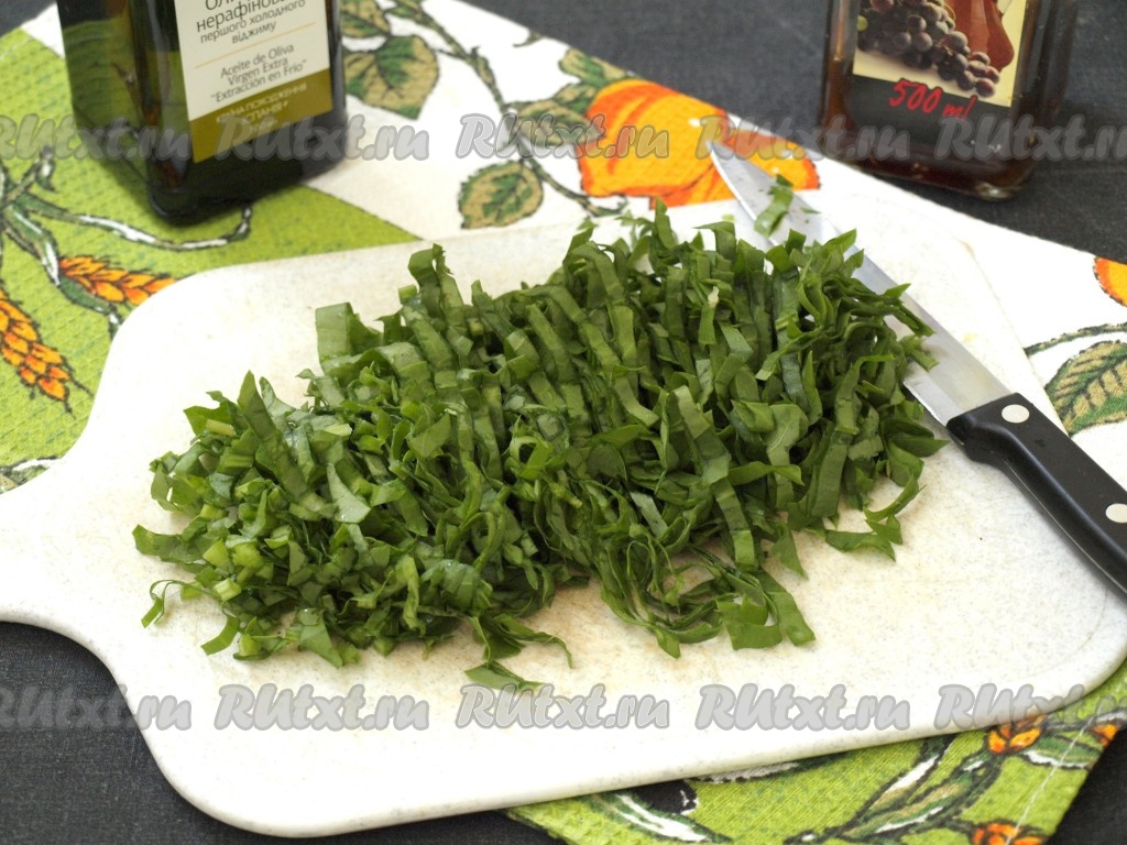 Вымыть и промокнуть полотенцем щавель, тонко нарезать.