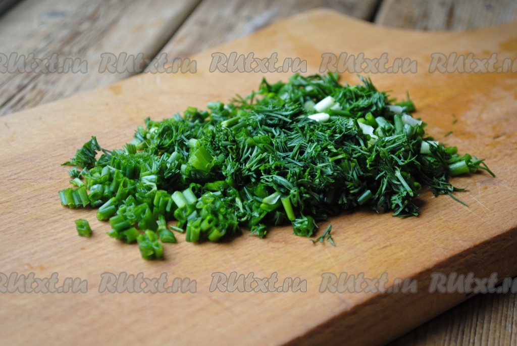 Зелень вымыть, обсушить и мелко нарезать.