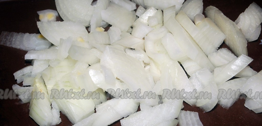 Нарезать репчатый лук и добавить к мясу, перемешать.