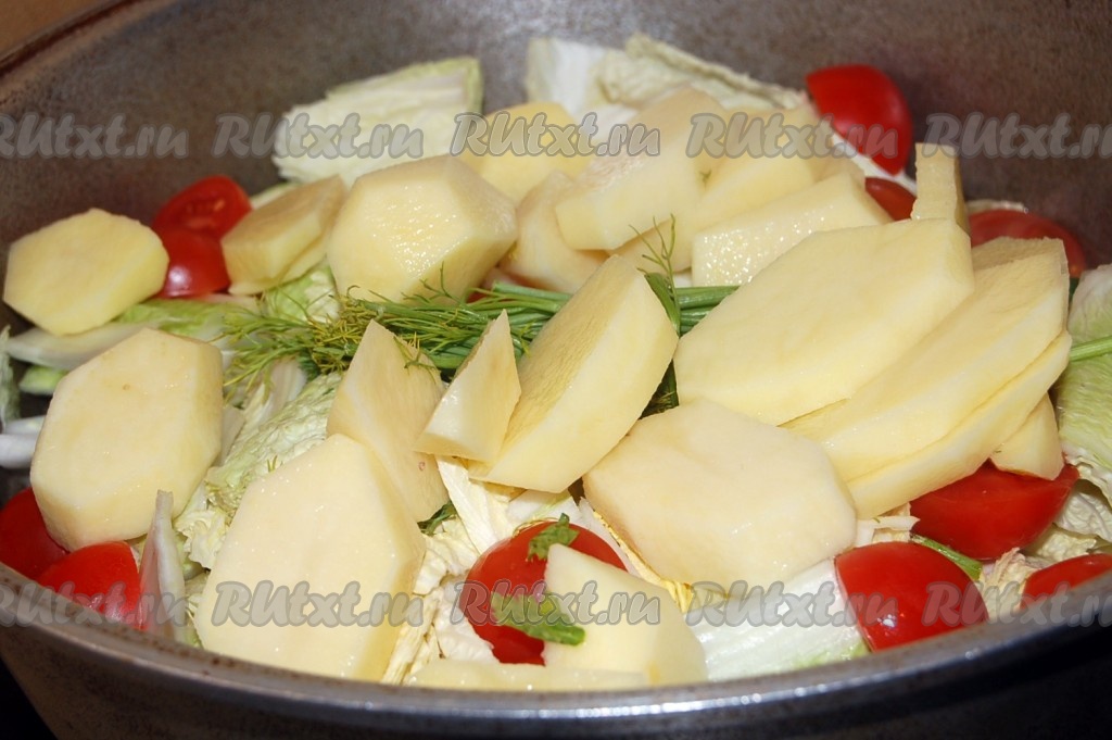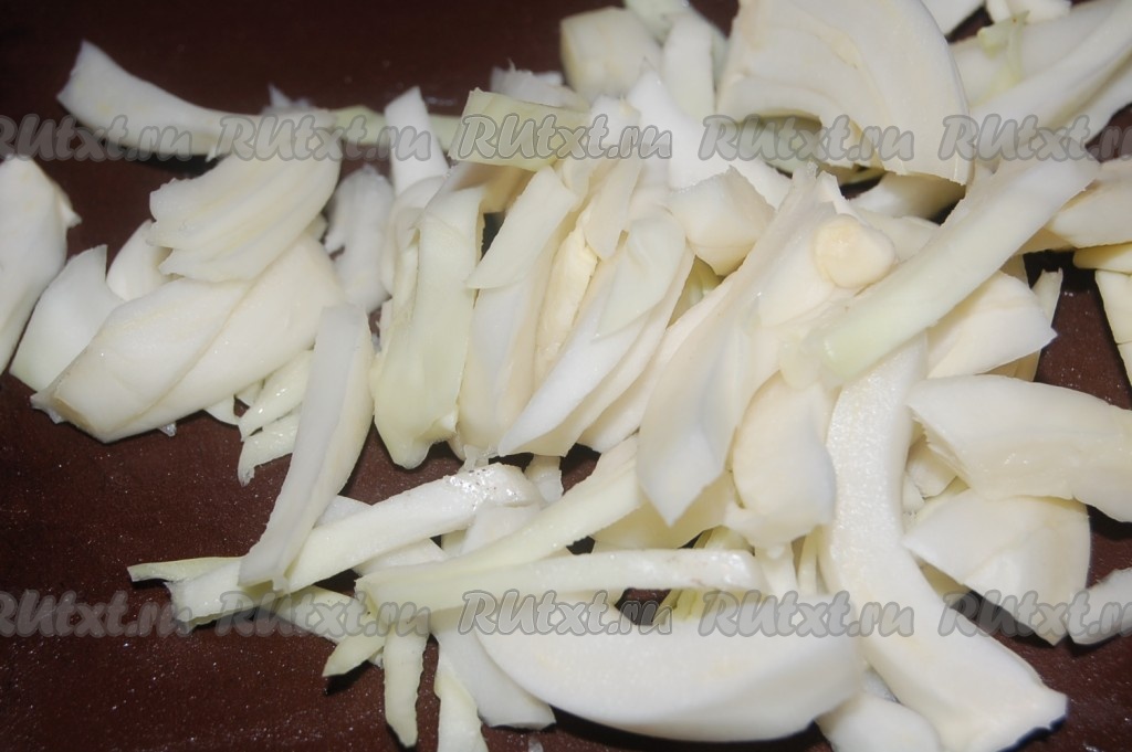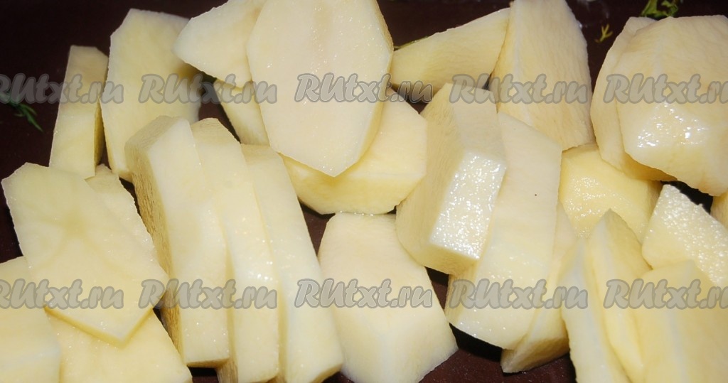 Завершает слой овощей - нарезанный картофель.