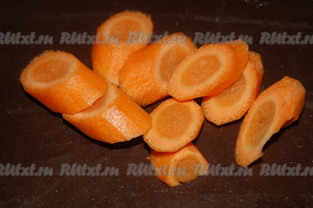 Нарезать дольками морковь, нашинковать капусту белокочанную и добавить их к ребрышкам.
