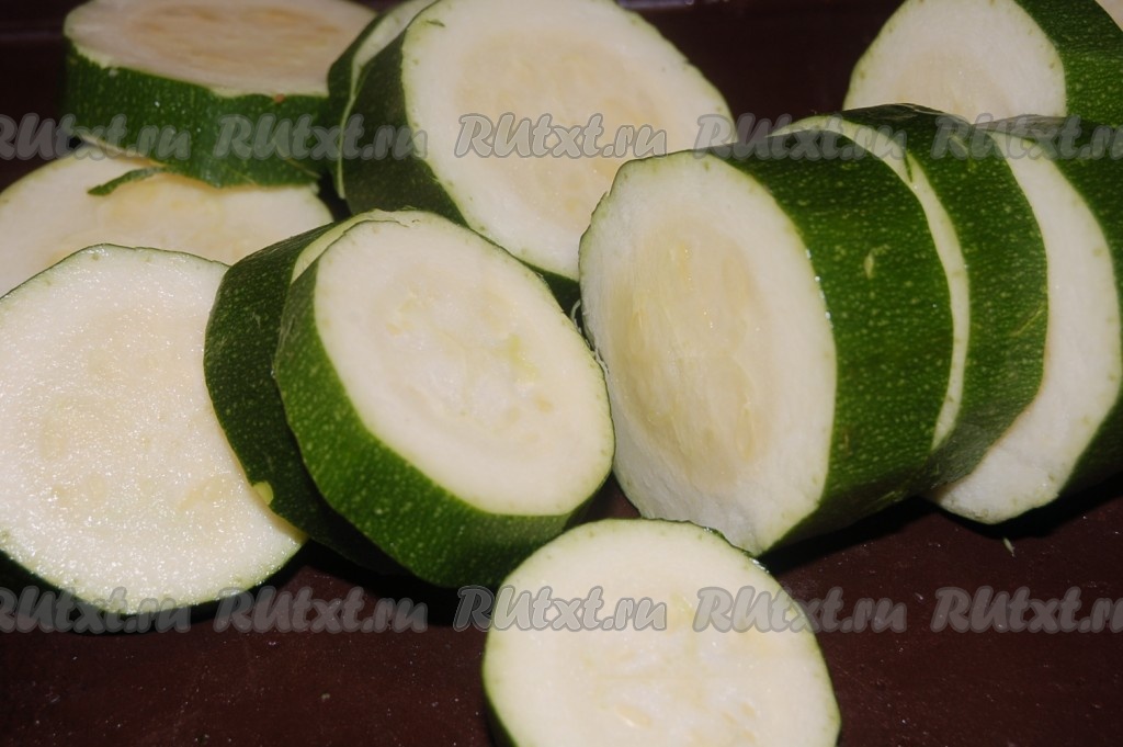 Затем нарезать цукини кружочками и добавить их в казан.