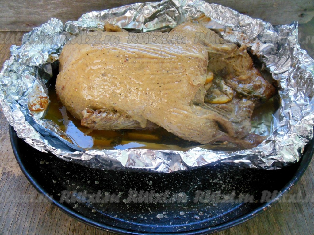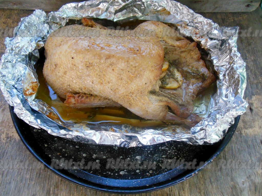 Утка, запеченная целиком в фольге в духовке, займет почетное место на вашем столе. Это наивкуснейшее блюдо можно готовить как в будни, так и в праздники. Благодаря фольге сохраняется заданный температурный режим запекания, что позволяет не подгореть мясу снаружи и сохранить всю его сочность внутри. Такое приготовление создает эффект "русской печи". И, что немаловажно, противень, на котором запекается птица, остается практически чистым. В результате запекания в фольге утиное мясо получается сочным, нежным и очень вкусным.