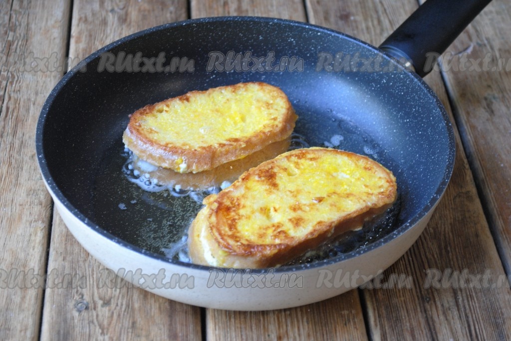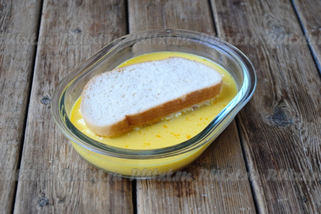 Хлеб со всех сторон обмакнуть в яично-молочную смесь.