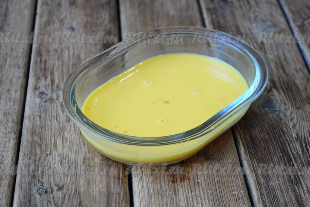 Отдельно в миске соединить яйца с молоком, хорошо перемешать яично-молочную смесь с помощью вилки или венчика.
