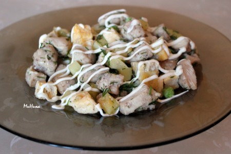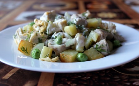 А ещё салат с курицей, картошкой и яйцами очень вкусно заправить майонезом.