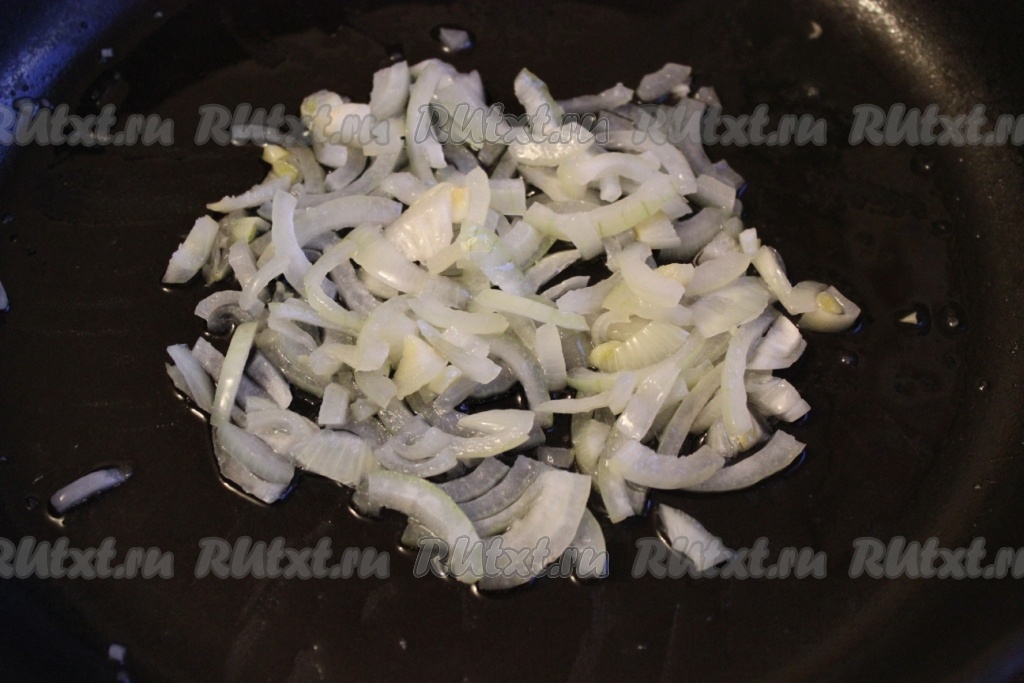 На сковороде с растительным маслом слегка обжарить нашинкованный лук. Переложить его в салатник.
