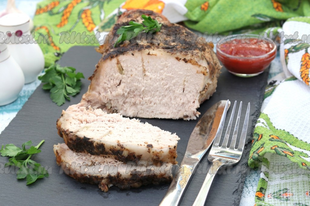 Разрезаем мясо тёплым и сразу подаём к столу.