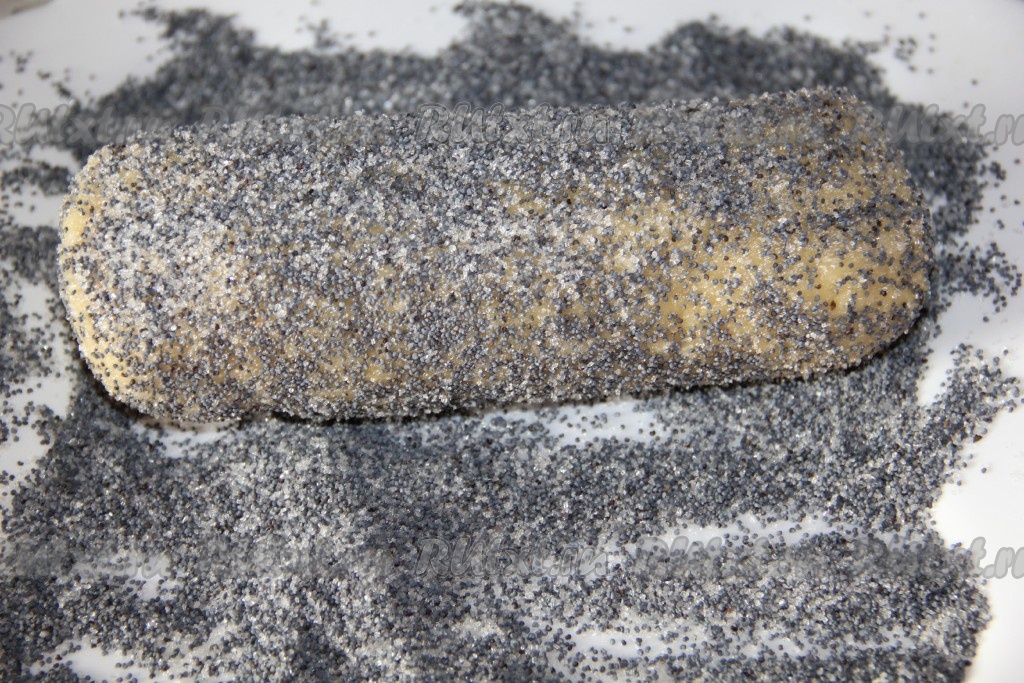 Когда песочное тесто подмерзнет, вынимаем его из холодильника и обваливаем хорошенько в маке.