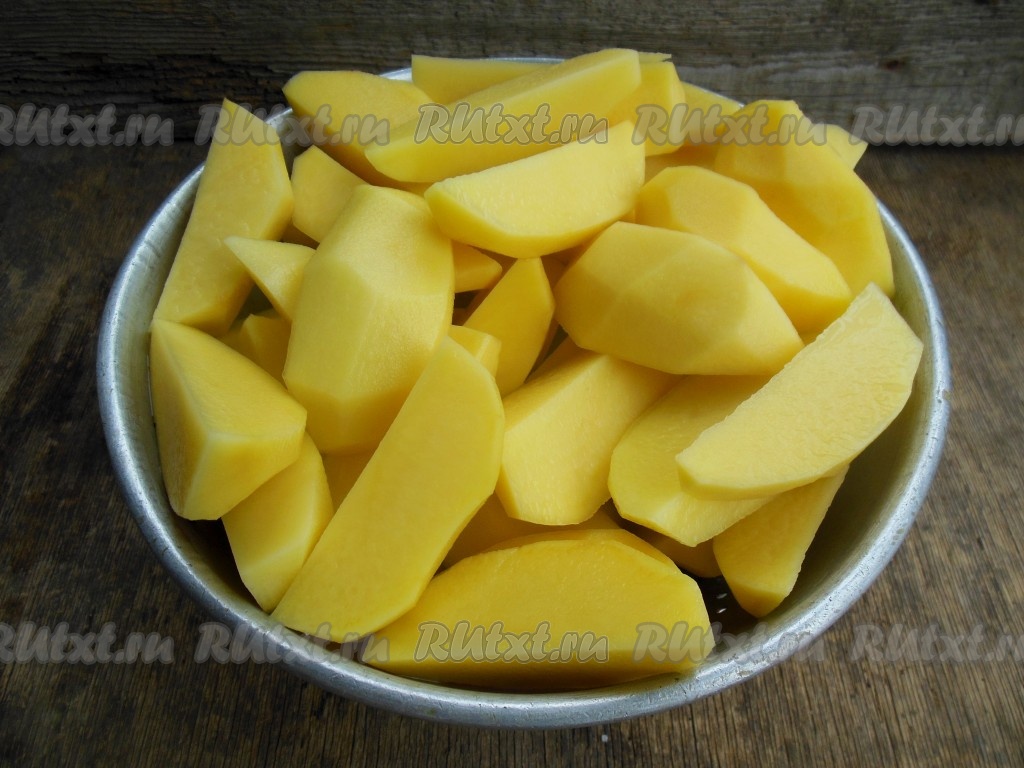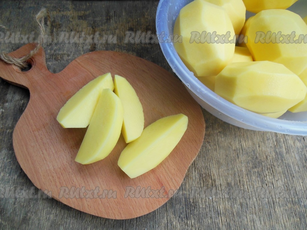 Очищенный картофель нарежьте крупными дольками.