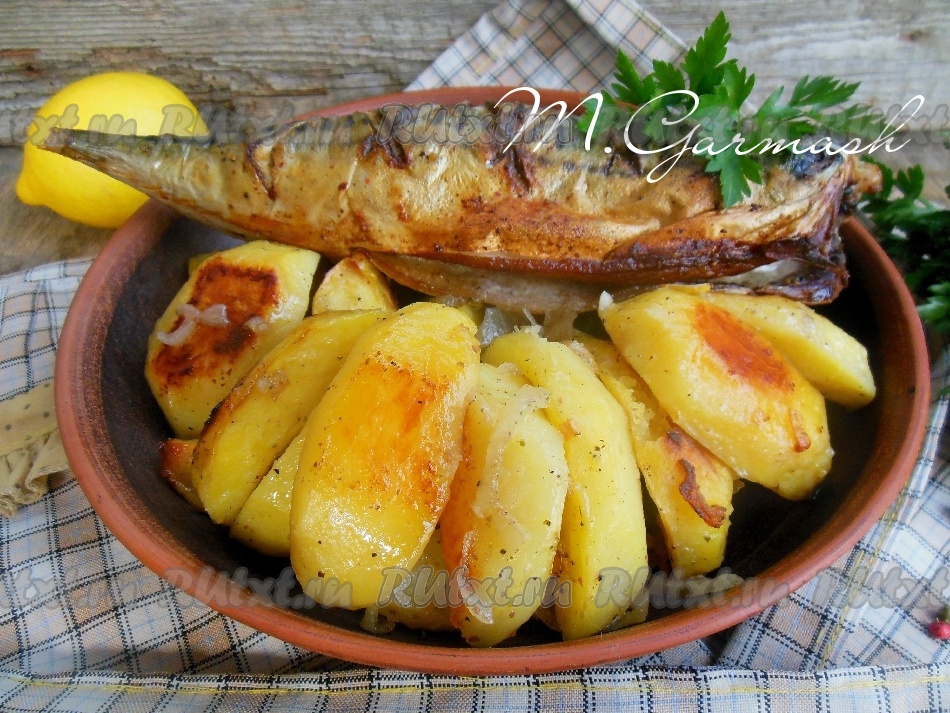 Я часто готовлю скумбрию и порой, когда времени совсем мало, запекаю ее в духовке вместе с картошкой. Одновременно готовится и гарнир, и рыбка к нему. Скумбрия получается очень нежной и вкусной, картофель выходит с тончайшей корочкой снаружи, мягким внутри и просто тающим во рту. А вот как добиться такого великолепного результата, я и расскажу в этом рецепте.