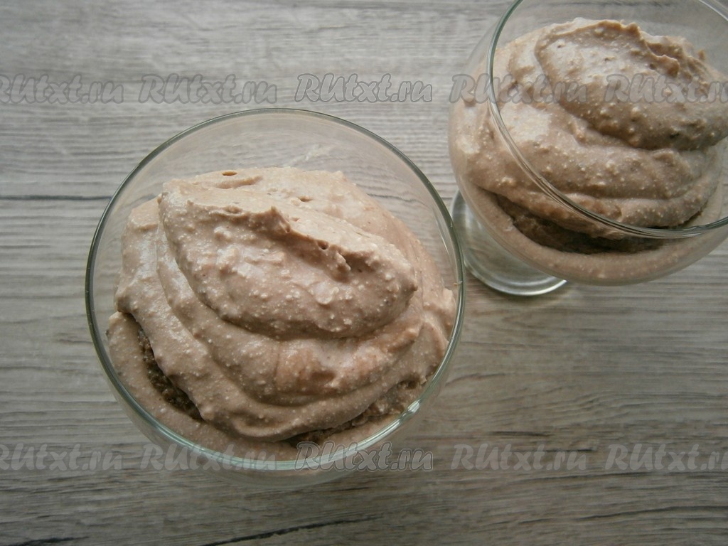 Поместить невероятно вкусный и нежный творожно-шоколадный десерт в холодильник на 1-2 часа и можно подавать.