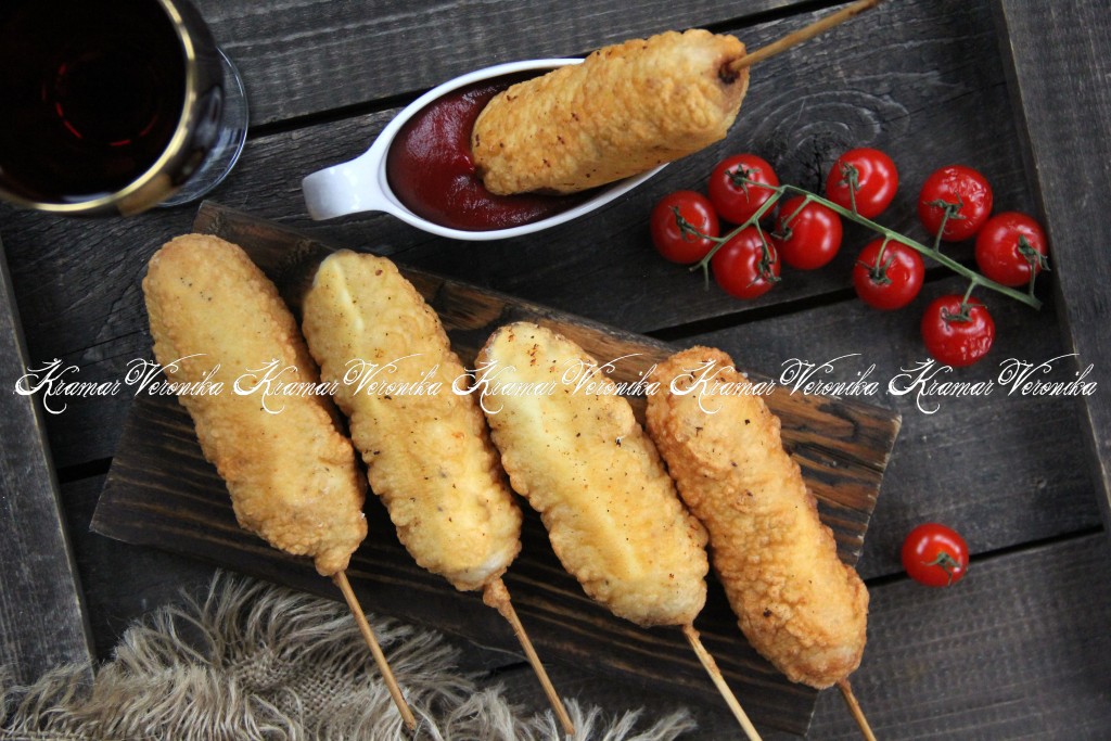 Хочу предложить рецепт приготовления корн-догов в домашних условиях. Корн-дог - это сосиска с сыром, завернутая в тонкий слой теста, нанизанная на деревянную палочку и обжаренная во фритюре. Этот вид фаст-фуда появился в США в начале двадцатого века и быстро завоевал популярность, благодаря простоте и легкости приготовления. Я предлагаю домашний вариант этого вкусного и сытного блюда. Подать его можно в качестве основного блюда с соусом или кетчупом. Сосиски для приготовления корн-догов лучше выбирать только высшего качества.