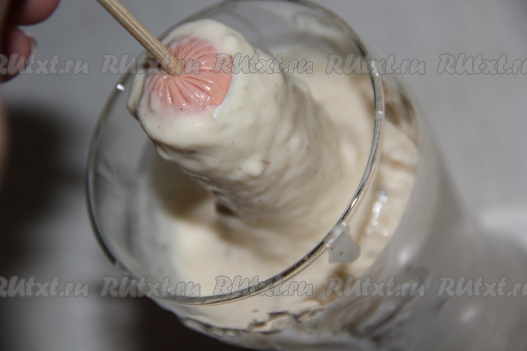 Перемешать тесто венчиком. Тесто для корн-догов получится не густым, как на оладьи.