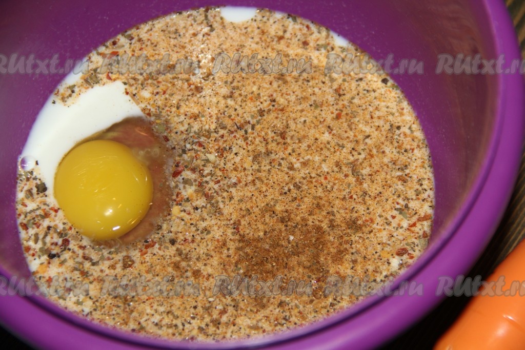 Соединить молоко, соль, яйцо и специи, слегка перемешать.