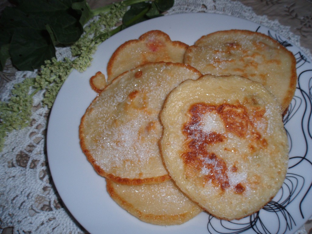 Готовые оладьи переложить со сковороды на блюдо, пересыпая каждый слой оладий сахаром.