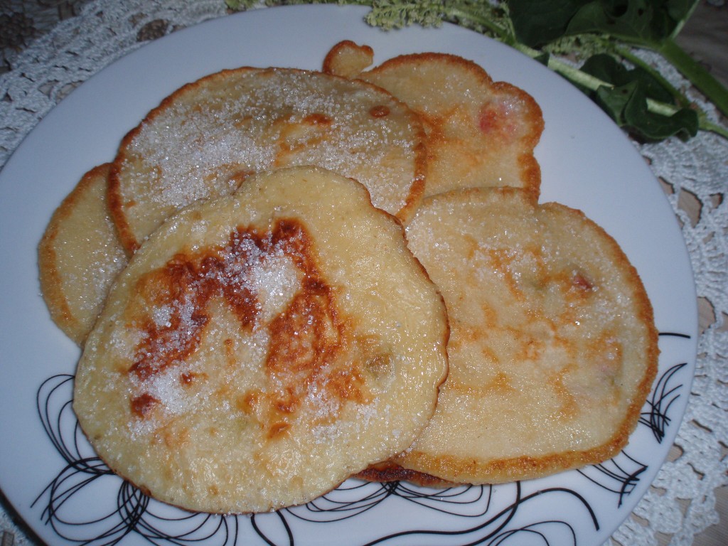 В мае можно приготовить множество вкусных блюд с черешками ревеня. Сегодня предлагаю приготовить замечательные оладушки на кефире.
