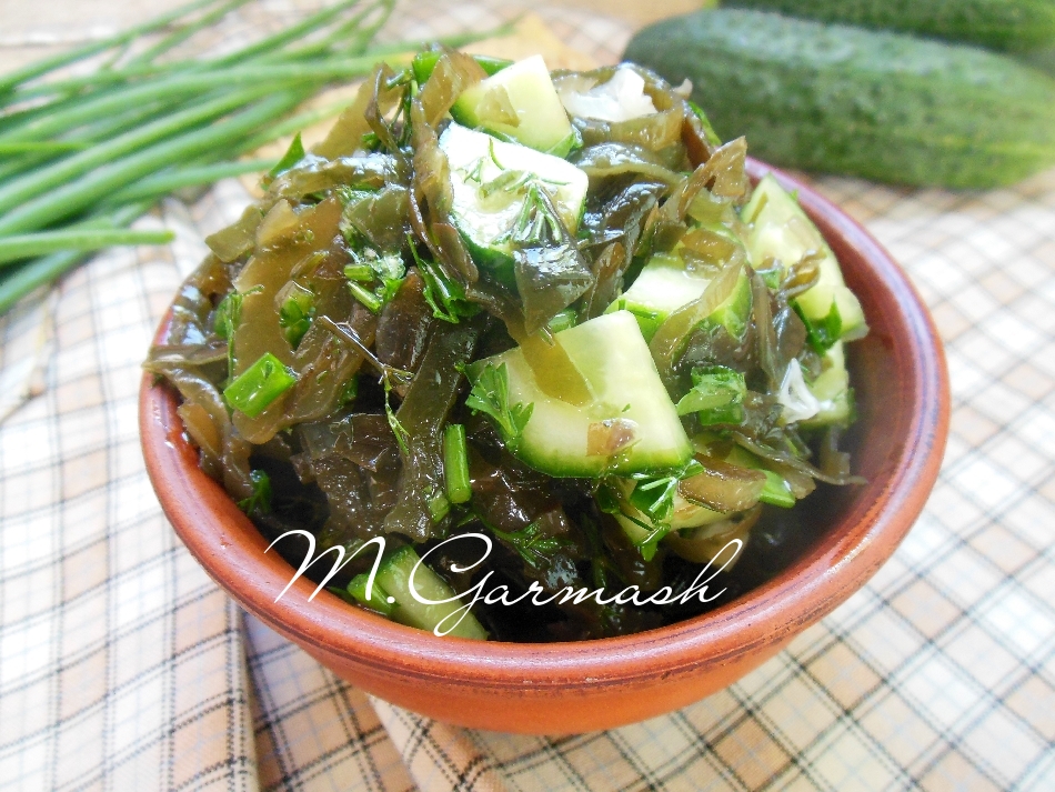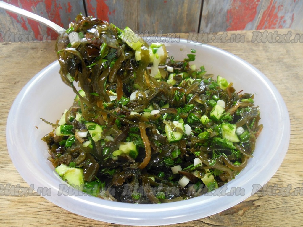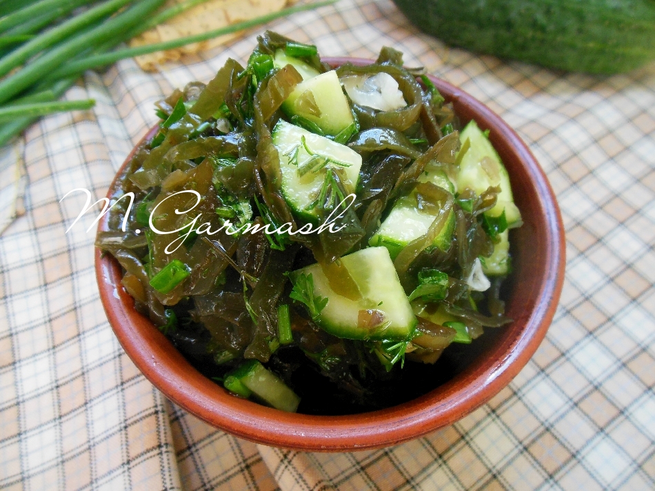 Этот простой, вкусный, полезный постный салат из маринованной морской капусты, зелени и свежих огурцов станет отличным дополнением к отварному картофелю или к другим гарнирам.