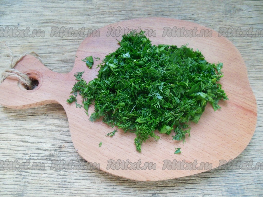 Зелень тоже нарезать мелко.
