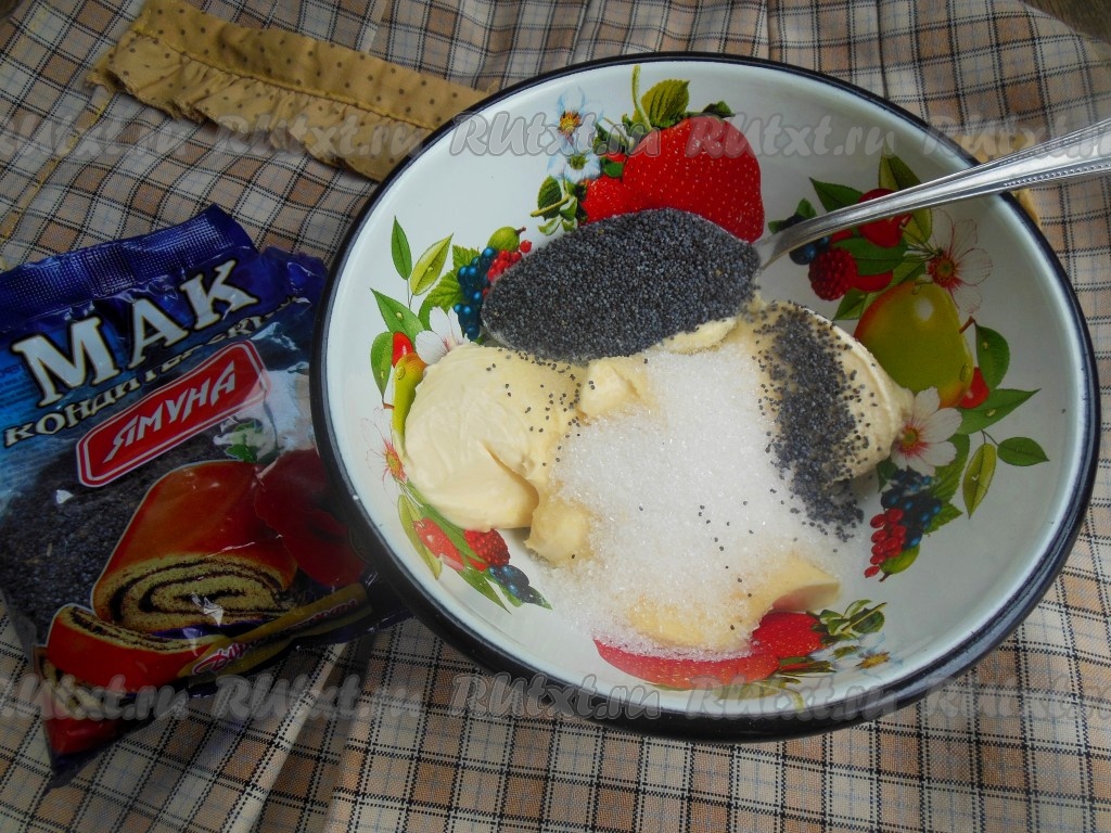 Для приготовления крема просто смешайте густую сметану, мак и сахар.