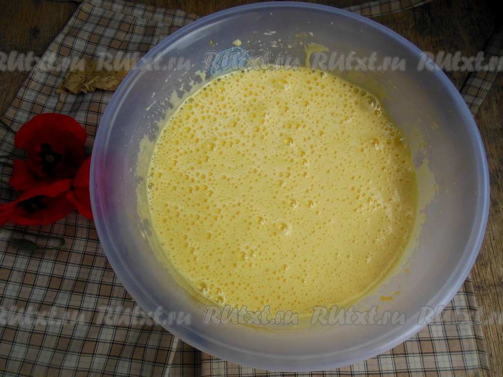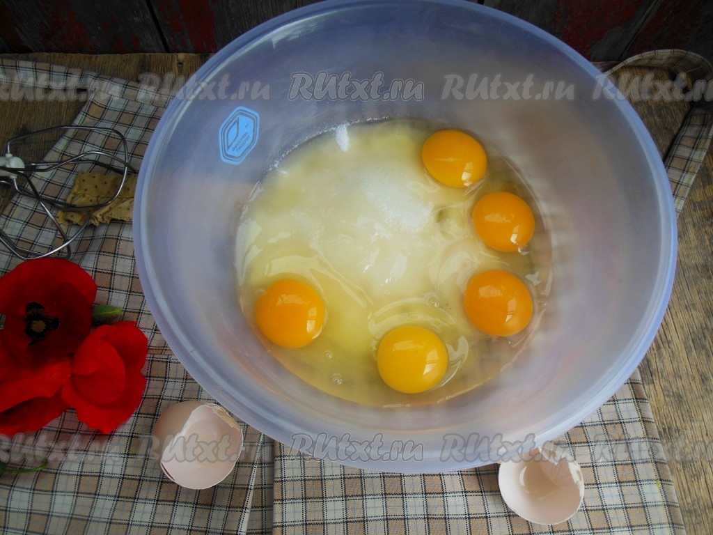 Яйца взбейте с сахаром при помощи миксера (в течение 4-5 минут).
