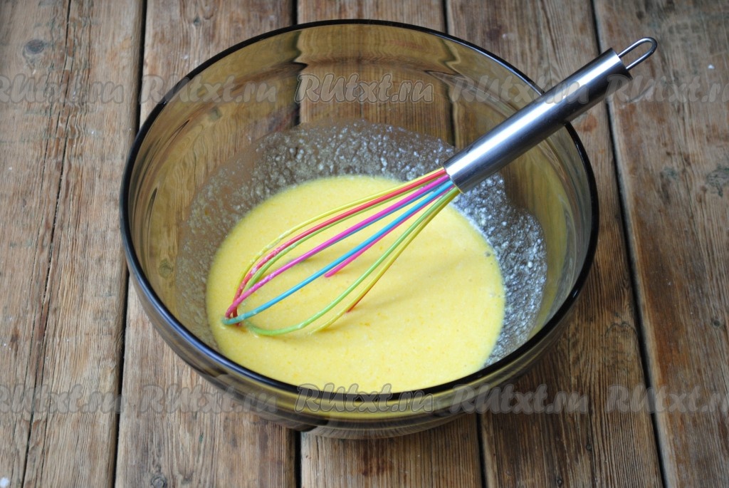 С помощью венчика размешать получившуюся массу до однородности.
