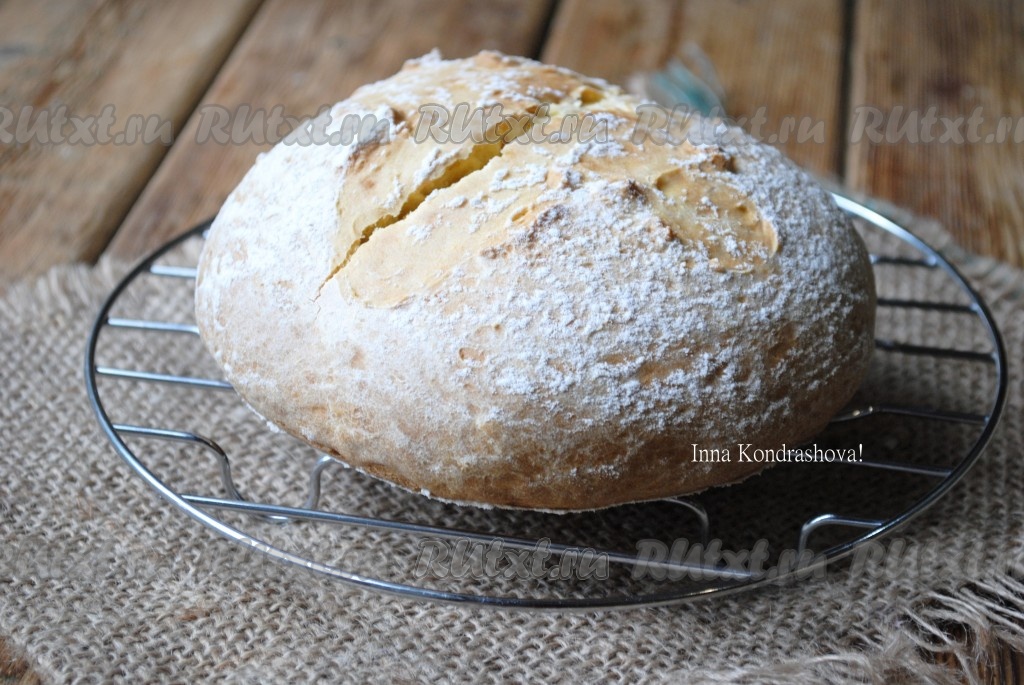 Выпекать хлебушек в разогретой до 180 градусов духовке около 30-35 минут (до красивого румяного цвета). Готовый бездрожжевой хлеб достать из духовки, выложить на решётку и полностью остудить.