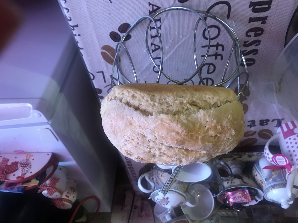 Очень вкусный и полезный бездрожжевой хлеб, замешенный на кефире, готов. Можно подавать на стол.