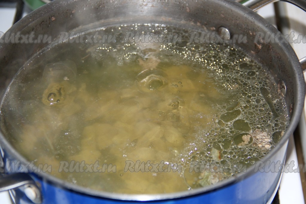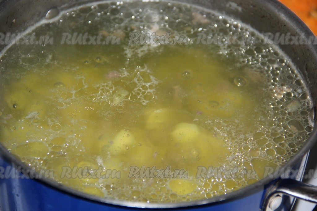 Когда сердечки проварятся 30 минут, выложить картофель в бульон и варить минут 10.