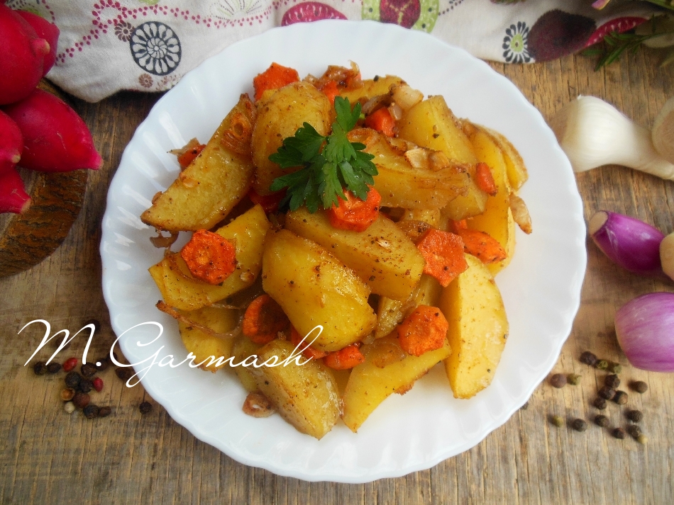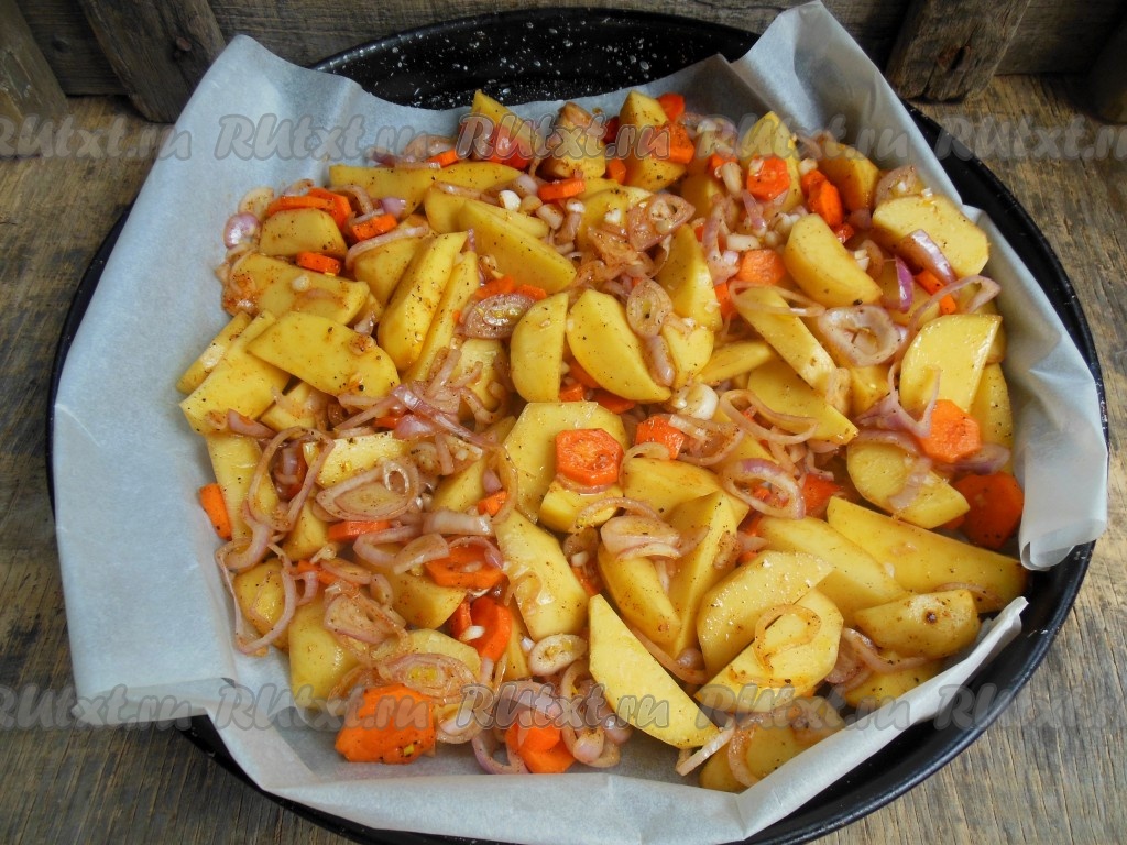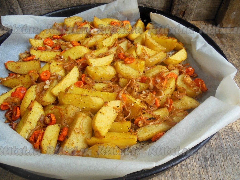 Картошка с луком и морковью в духовке