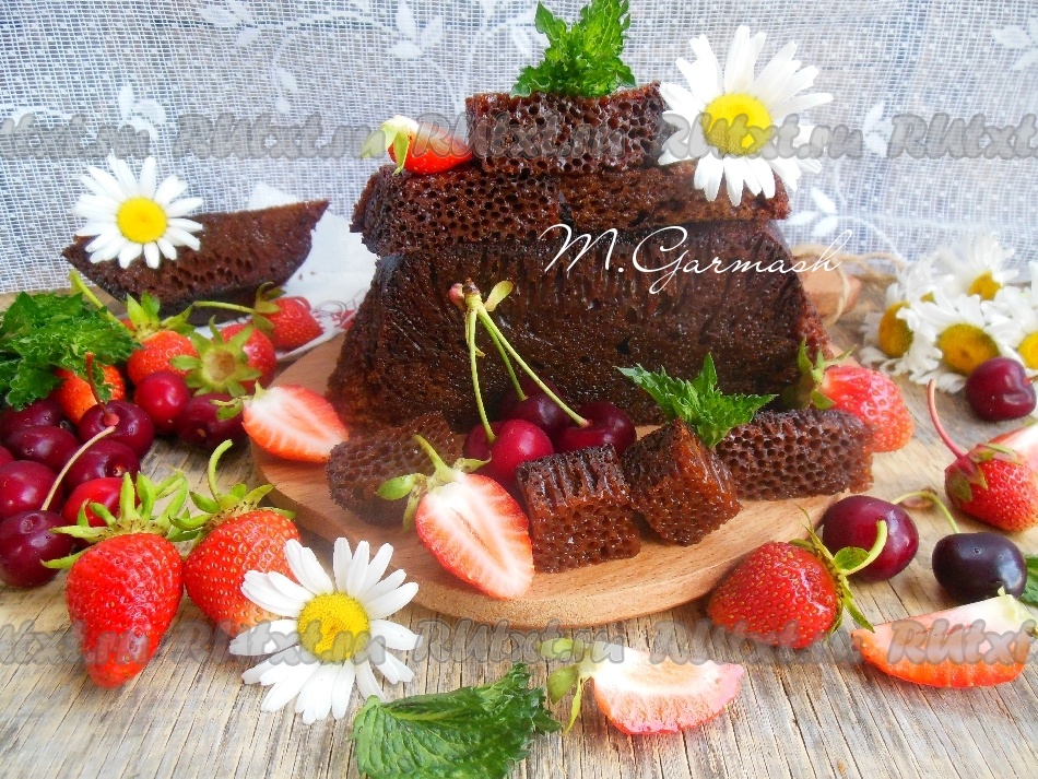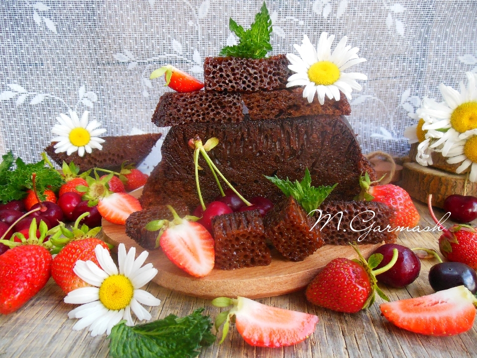 Сегодня предлагаю вашему вниманию самый загадочный десерт молдавской кухни - "Бабка Нягрэ" или "Черная бабка по-молдавски". Эта выпечка всегда украшает праздничные столы, например, на свадьбы или крестины, когда собирается большое количество гостей. "Бабка Нягрэ" зачастую подаётся вместе с "Белой Бабкой" ("Бабэ Албэ") - эти два пирога, нарезанные на кусочки и поданные на одном блюде, символизируют мужское и женское начало. Рецепт я взяла у молдавской хозяюшки Марины, за что ей огромное спасибо, так готовят долгие годы в ее семье. "Бабка Нягрэ" по вкусу не похожа ни на что, ее даже трудно с чем-то сравнить. Нежная и дырчатая внутри, с карамельным вкусом, слегка напоминающая пчелиные соты, даже на солнышке можно разглядеть каждое ее "окошко". Этот десерт стоит попробовать!