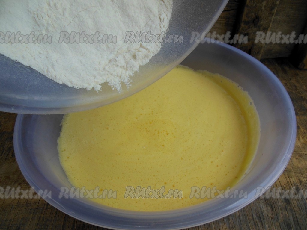 Яйца взбейте с сахаром при помощи миксера до полной однородности (взбивайте около 4-5 минут).
