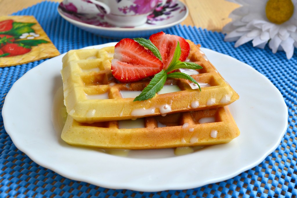 Вкуснейшие, ароматнейшие вафли, приготовленные со сгущенкой в вафельнице, подать к столу, дополнив, например, ягодами, джемом, вареньем, мёдом, сгущенкой и т.д. Очень вкусно с молоком или чашечкой кофе, попробуйте!