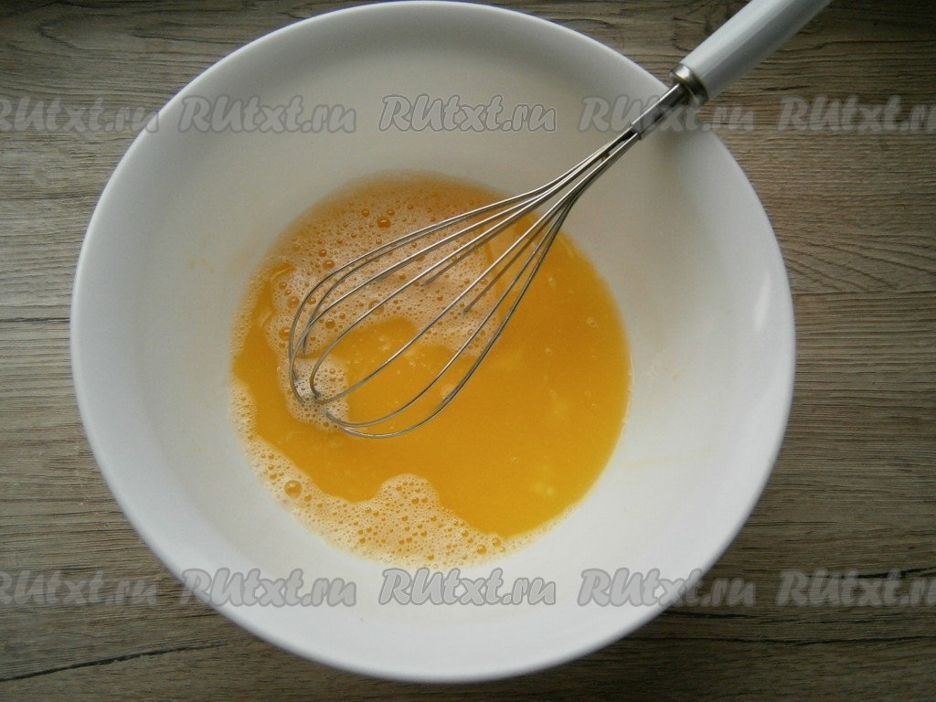 Взбить яйцо венчиком, влить сгущенку, растопленный и охлажденный маргарин (или масло), тщательно перемешать.