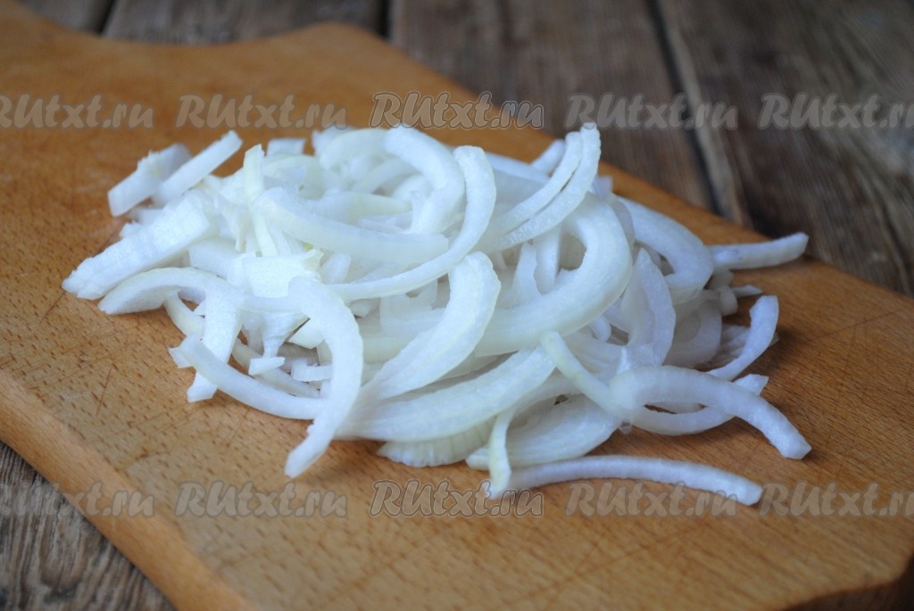 Лук очистить и нарезать полукольцами.