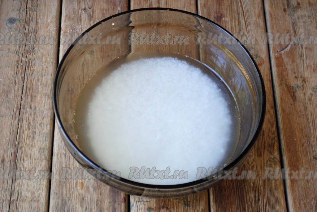 Рис промыть 3-4 раза в холодной воде. В конце промывания вода должна остаться прозрачной.