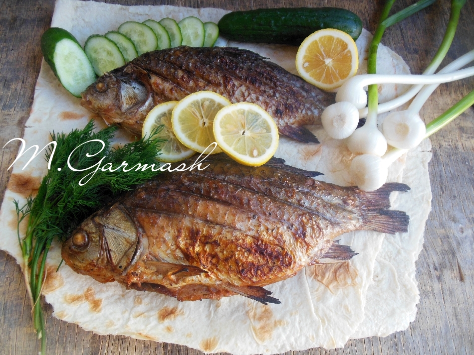 Так выглядят уже готовые караси, жареные на мангале (на фото).