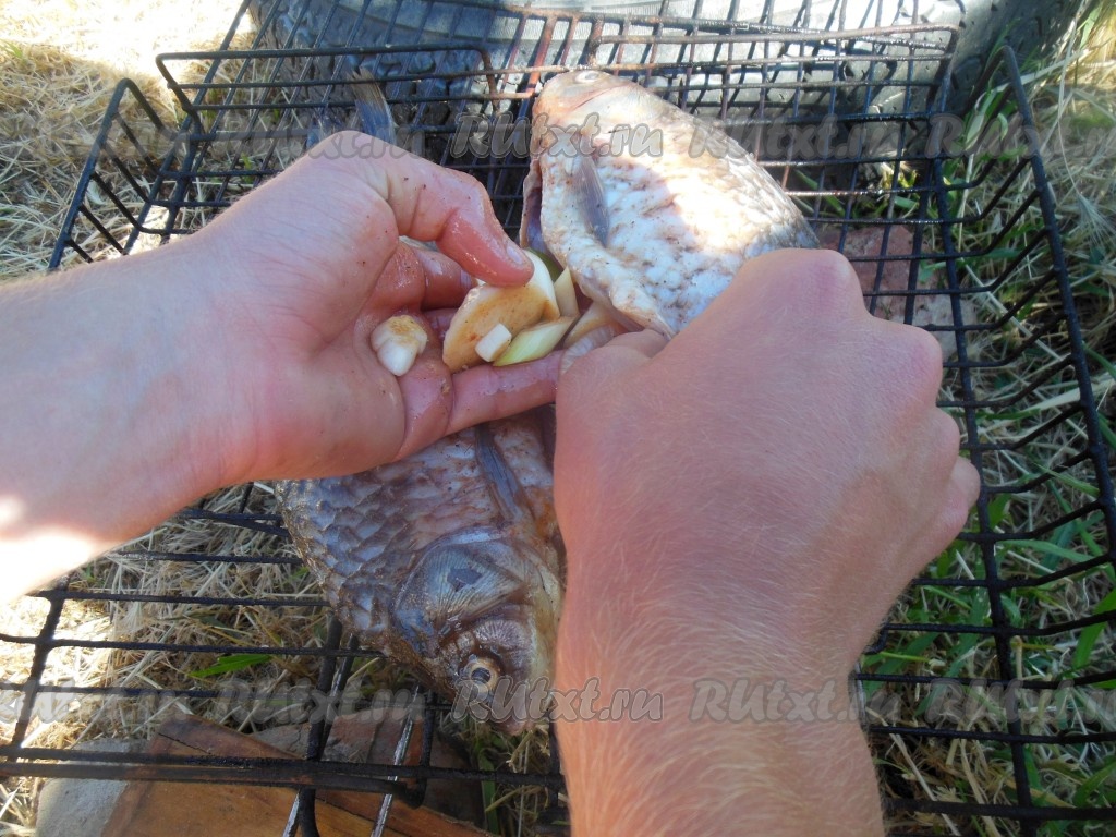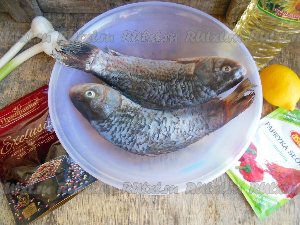 Подготовьте продукты для приготовления карасей на мангале.