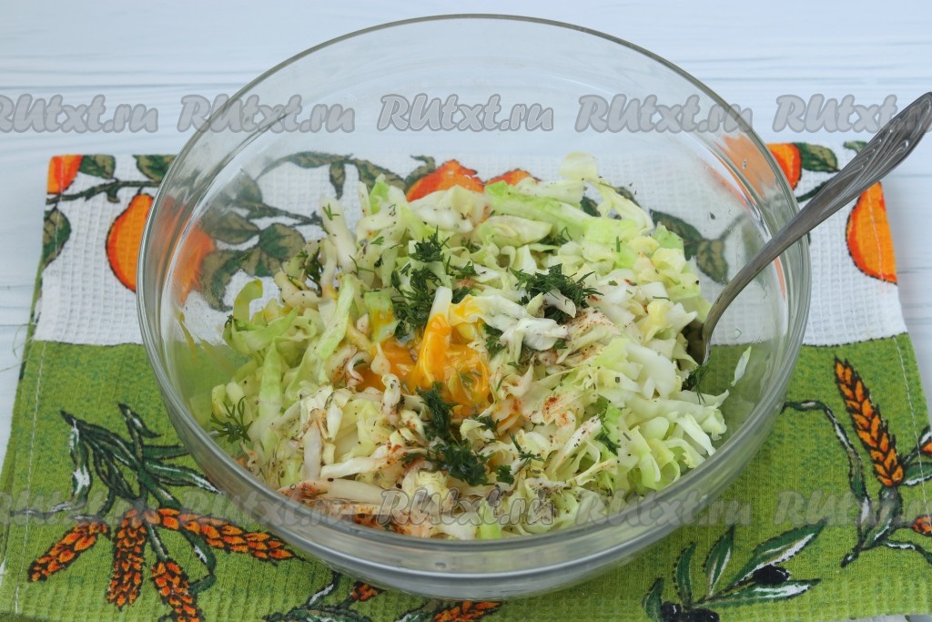 С капусты слить воду, добавить яйцо, соль, перемешать и начинка для пирога готова. Если хотите, то можно добавить сушёные травы для усиления аромата, тут дело вкуса.