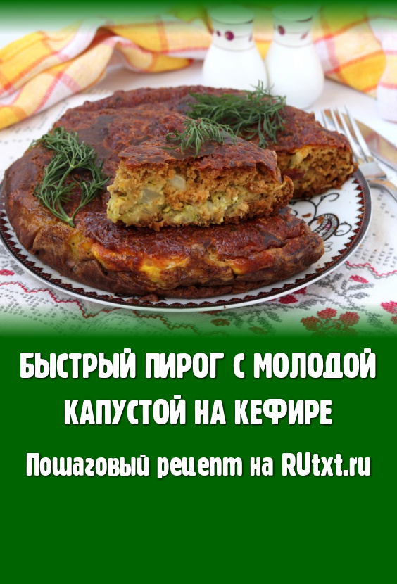 Предлагаю вам приготовить быстрый пирог с молодой капустой. Капусту в данном случае тушить не нужно - достаточно залить кипятком, а тесто замешивается на кефире и не нужно ждать, пока поднимется, как дрожжевое. Этот вкусный пирог можно подать как к чаю, так и с первыми или вторыми блюдами.