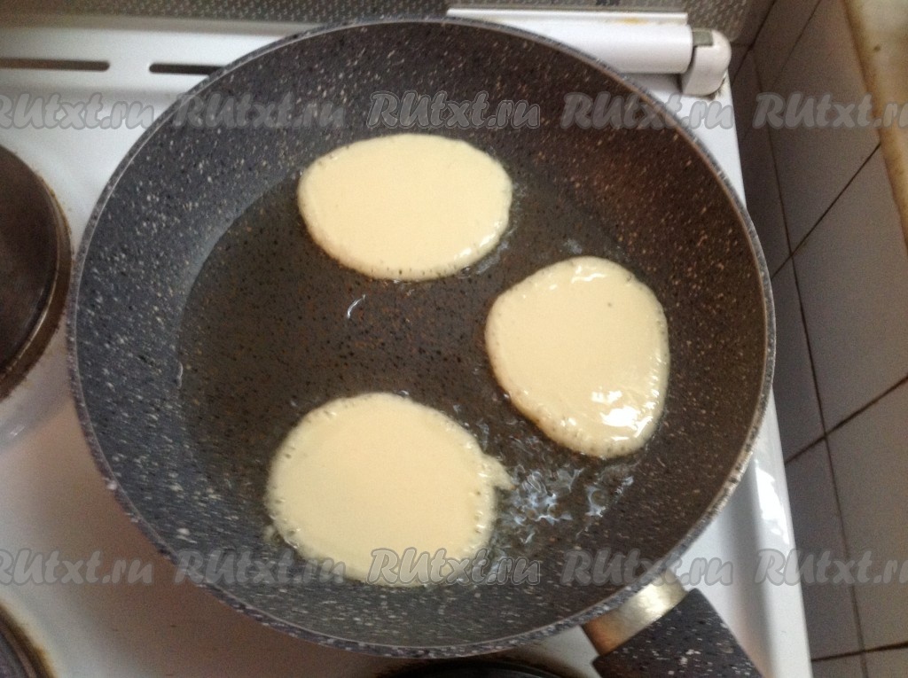 Разогреть сковородку, налить масло и выложить по одной столовой ложке теста (как для обычных оладушек).