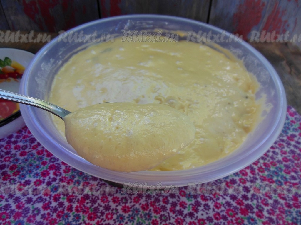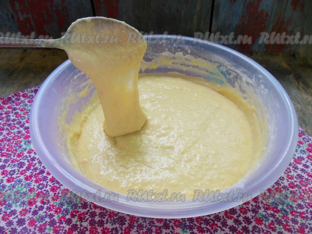 Готовое тесто получится средней густоты (как на фото).