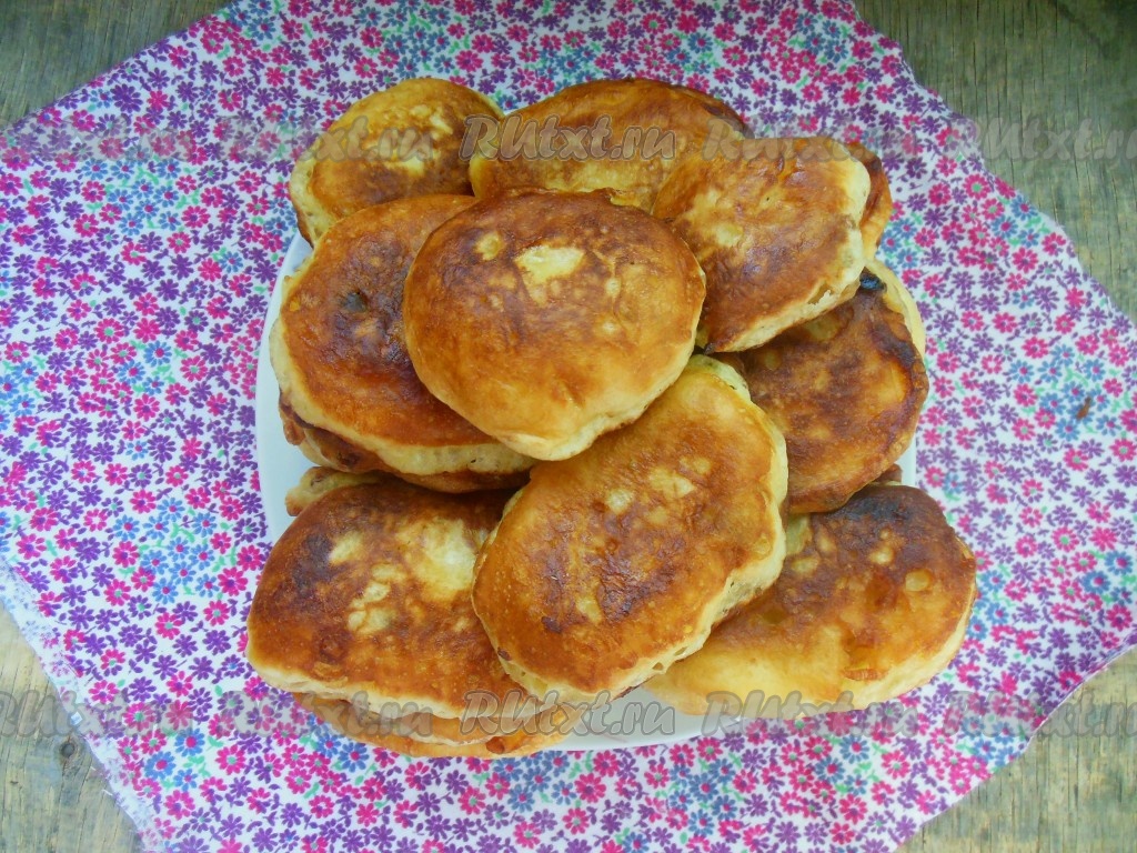 Оладушки жарятся очень быстро. Готовые дрожжевые оладья можно промокнуть бумажным полотенцем, чтобы убрать лишнее масло.